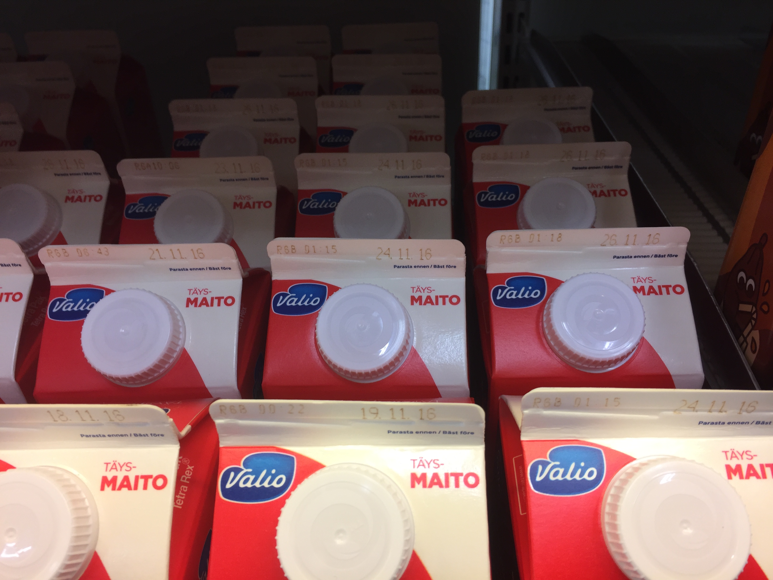 Monet päivämäärät kertovat sen, että tuotetta ei myydä kovin paljon suhteessa hyllytilaan. Hyllyyn muodostuu monen päivän jono, jonka toiseen päähän työnnetään lisää maitoa, toisesta päästä otetaan ja välissä on monen päivän varasto. Kauppa voisi jättää 4-5 päivän ajan maidon tilaamatta ja silti se ei loppuisi kesken.